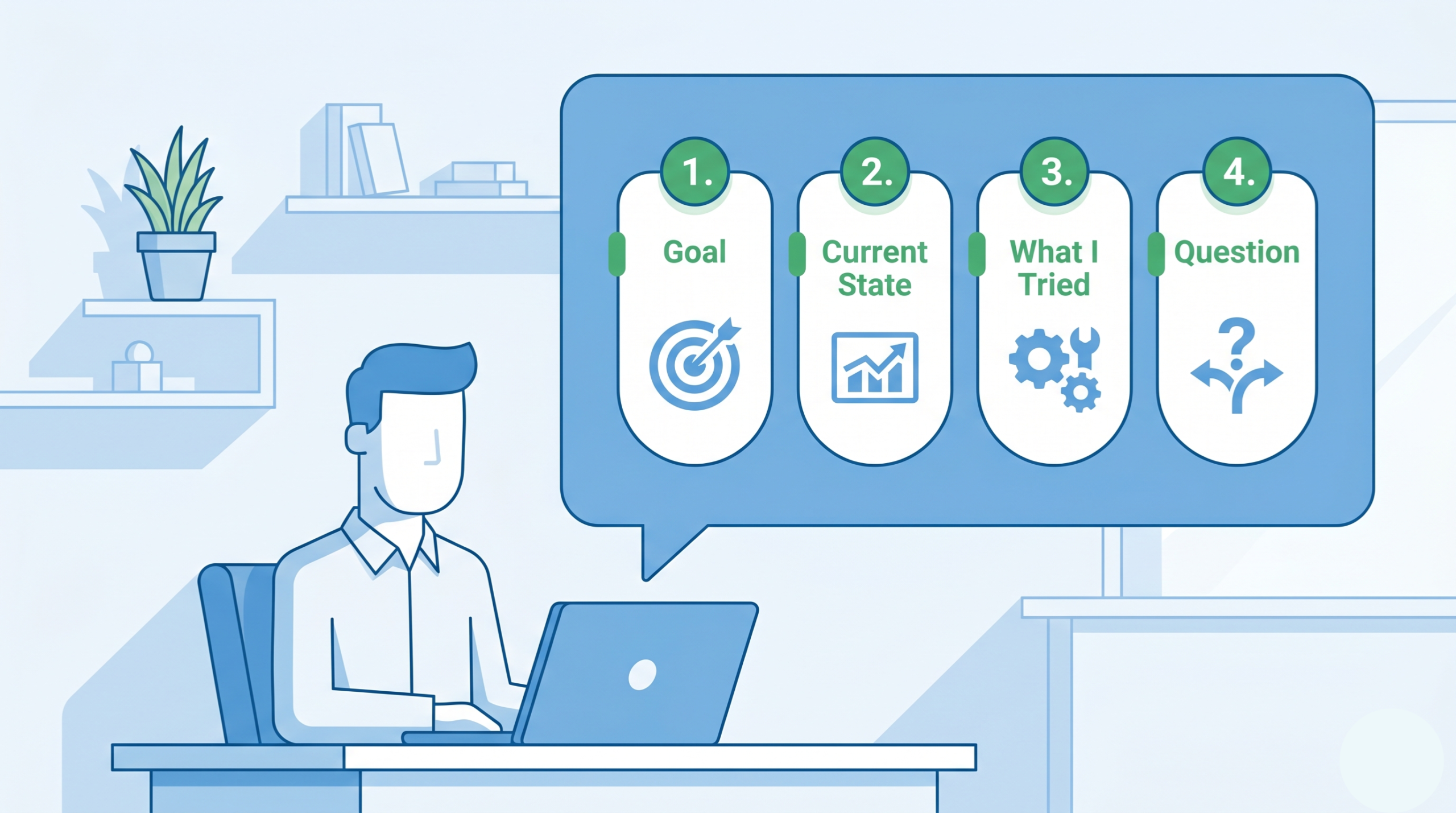 エンジニアの質問は、以下の4要素で構成すると伝わりやすくなります。